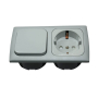 C-Line interrupteur simple et prise de courant Schuko 230V avec Opal cadre double gris - emballé