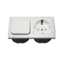 C-Line interrupteur simple et prise de courant Schuko 230V avec Opal cadre double blanc - emballé